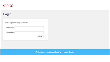 | Xfinity/Comcast | admin | password |