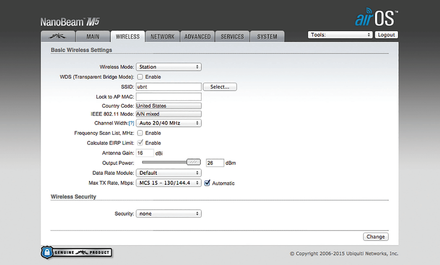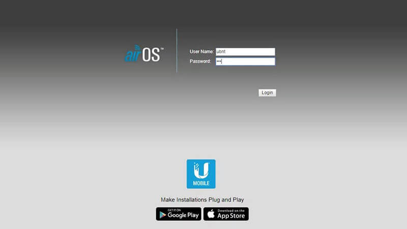 Note: If you are using airRouter, the default IP address is 192.168.1.1. airOS Configuration Interface is supported on M Series product versions including NanoBridge, NanoStation, and Nano Power Beam.