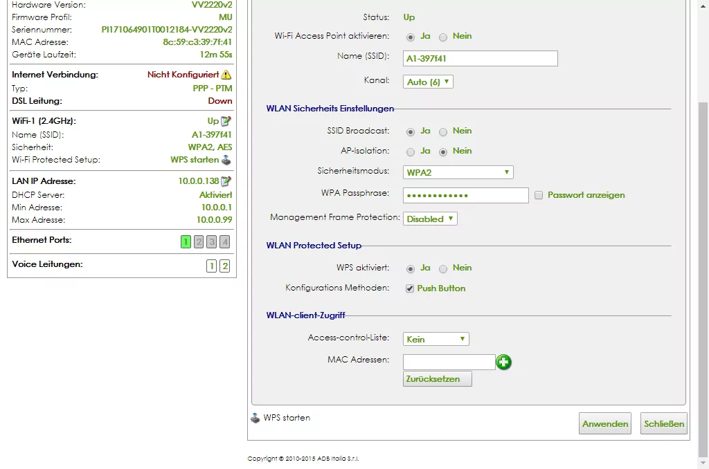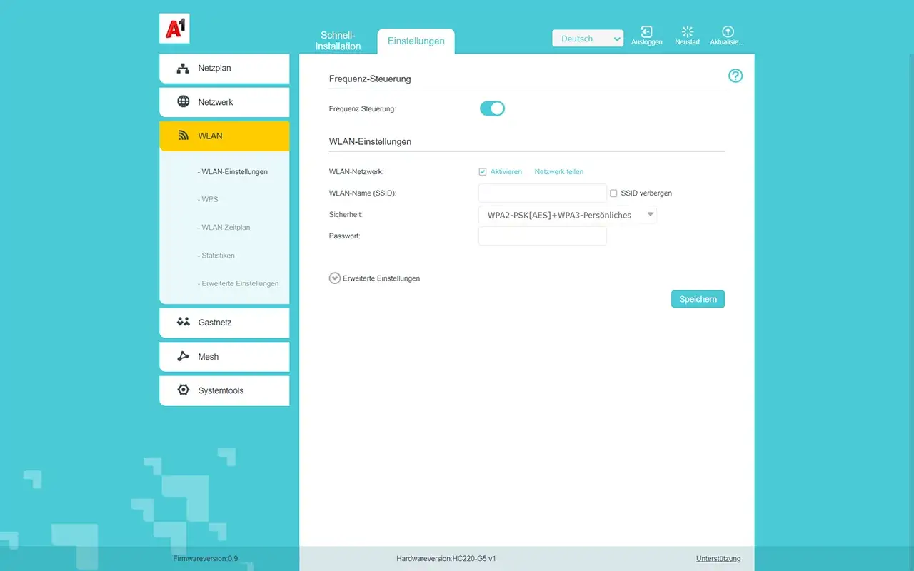 - Enter the Wi-Fi Password in the WPA-PSK-Schlüssel field.