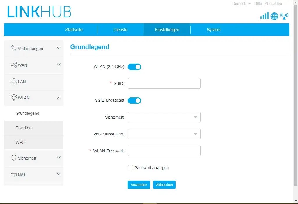 - Enter the Wi-Fi Password in the WLAN-Passwort field.