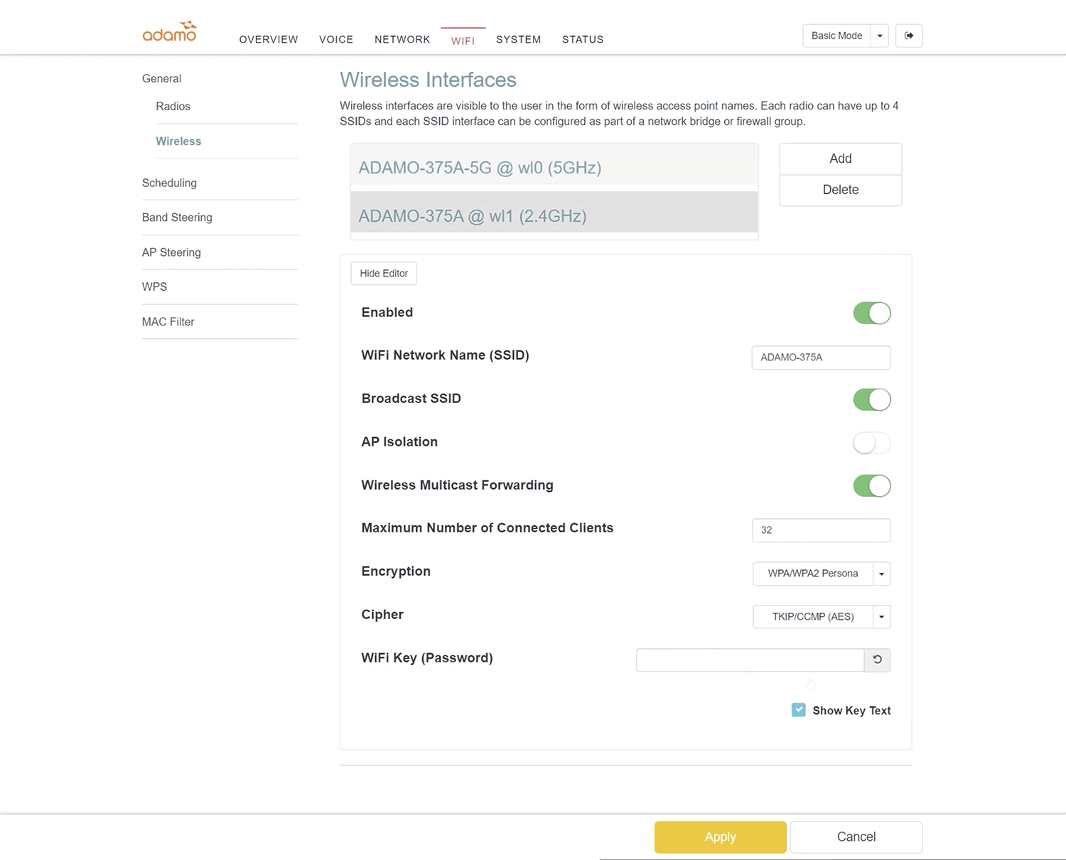 - Enter the Wi-Fi Password in the WiFi Key (Password) field.