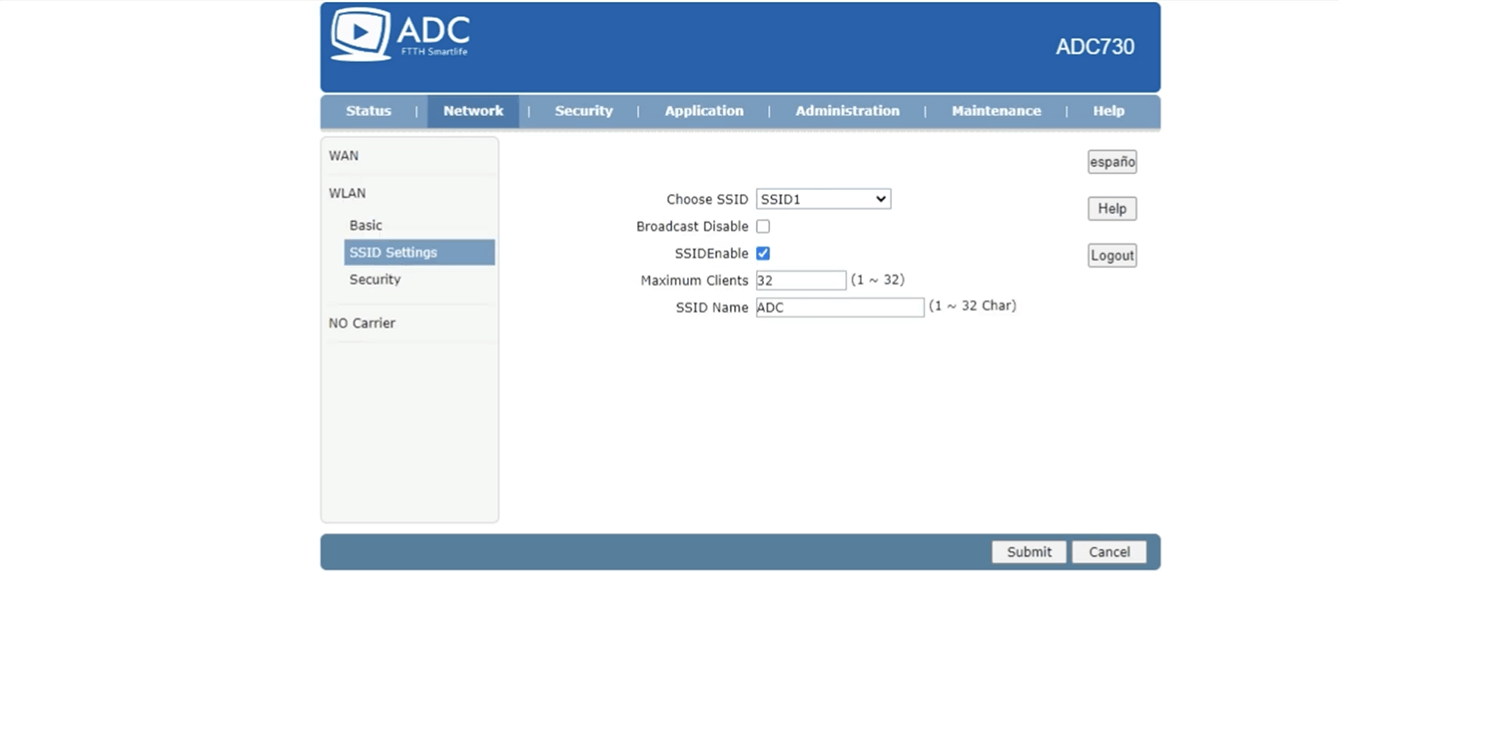 - Enter the Wi-Fi Network Name in the SSID Name field and click Submit.