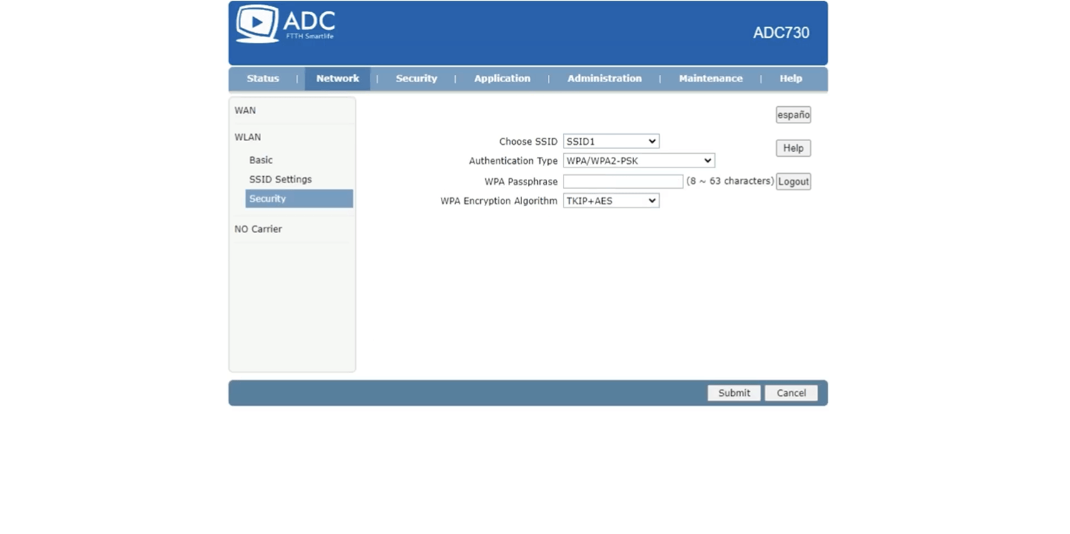 - Enter the Wi-Fi Password in the WPA Passphrase field and click Submit.