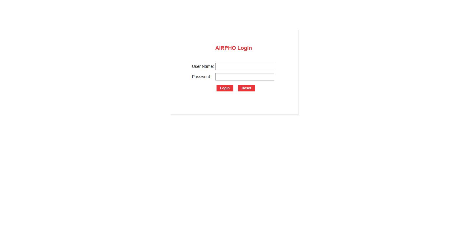 Airpho web interface allows you to change Wi-Fi password, Network Name (SSID), and default router settings at http://192.168.2.1 or http://192.168.1.1.