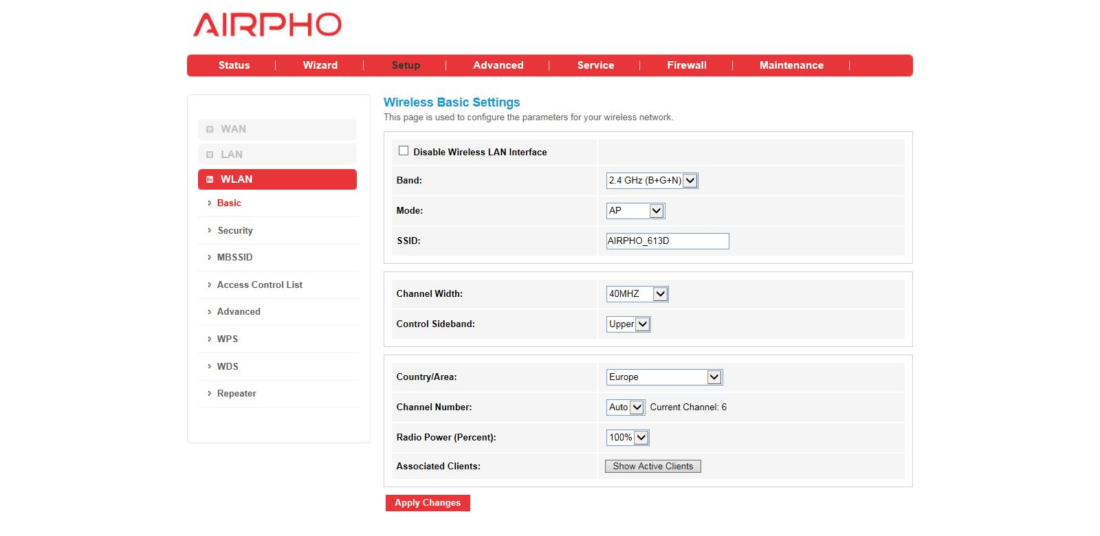 - Enter the Wi-Fi Network Name in the SSID field and click Apply Changes.