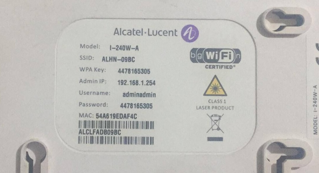 Default Alcatel-Lucent Username and Password