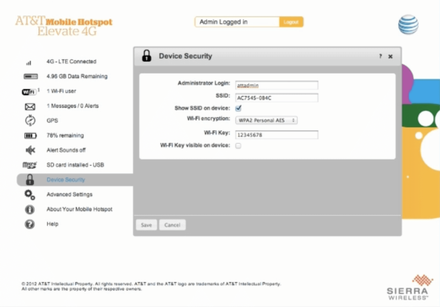 - You will be logged in to the AT&T Elevate 4G Web Manager.