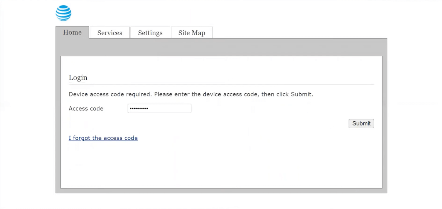 Note: The Device Access Code is printed on a sticker on the back of your AT&T U-verse gateway.