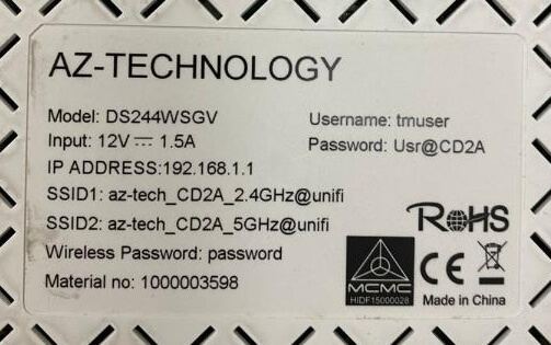 | Aztech DS244WSGV | 192.168.1.1 | tmuser | Usr@XXXX (replace XXXX with last 4-digit MAC ID in capital letters) |