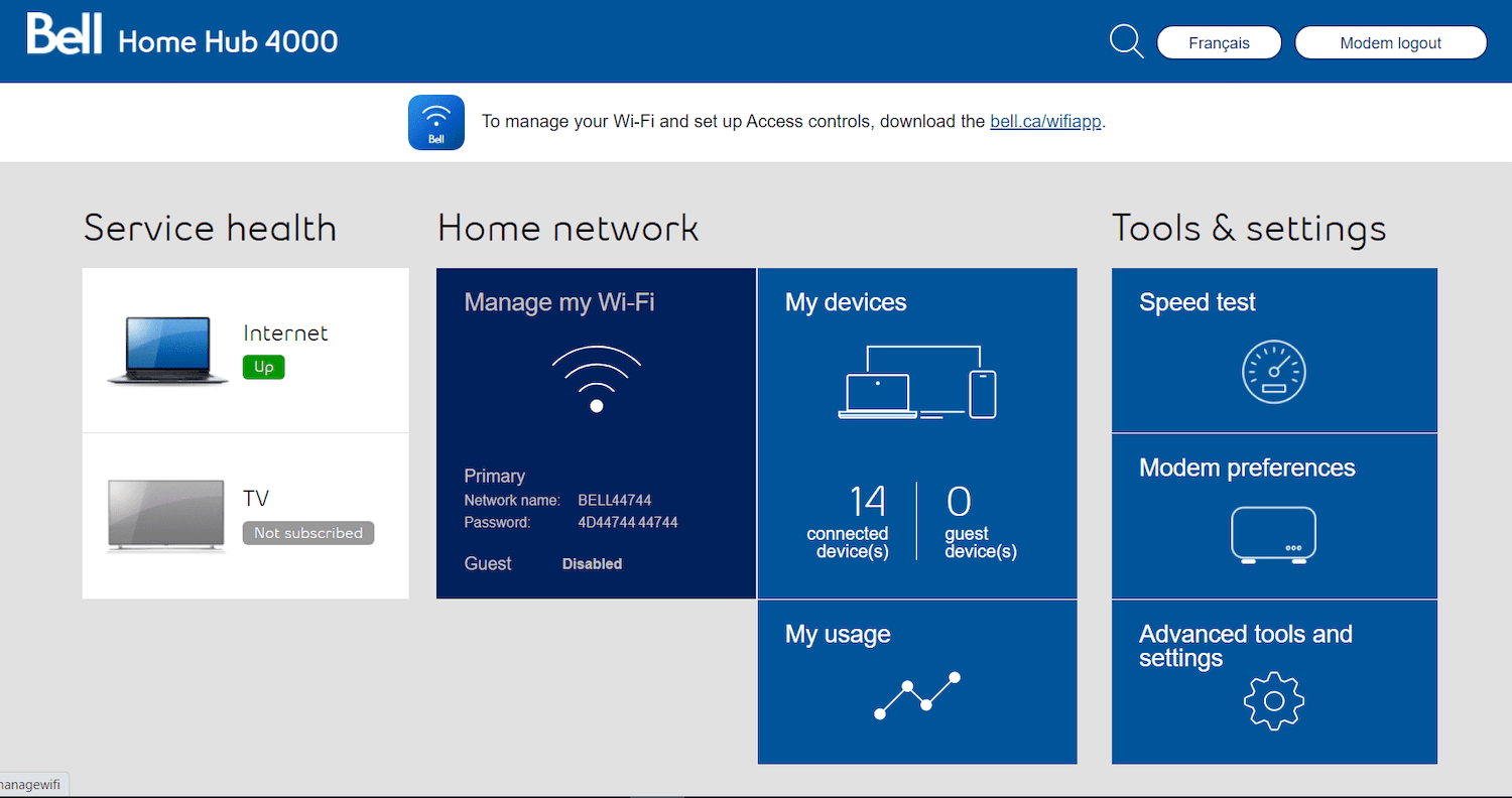 - You can also visit bell.ca/mymodem to access the Wi-Fi settings page.