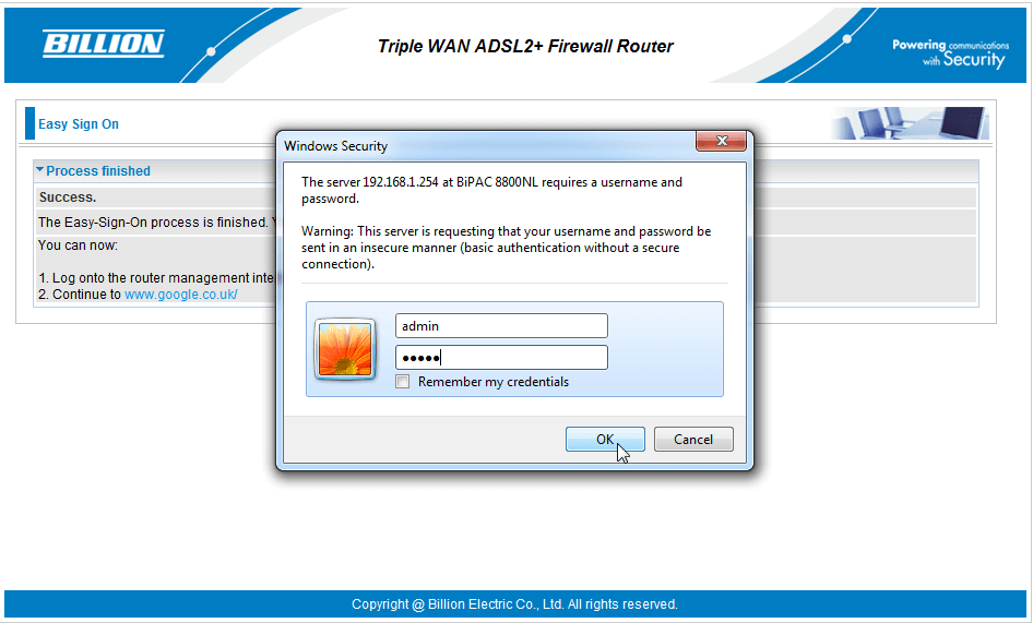 How to login to Billion router?