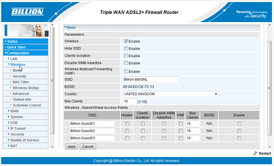 - You will be logged in to the Billion router settings.