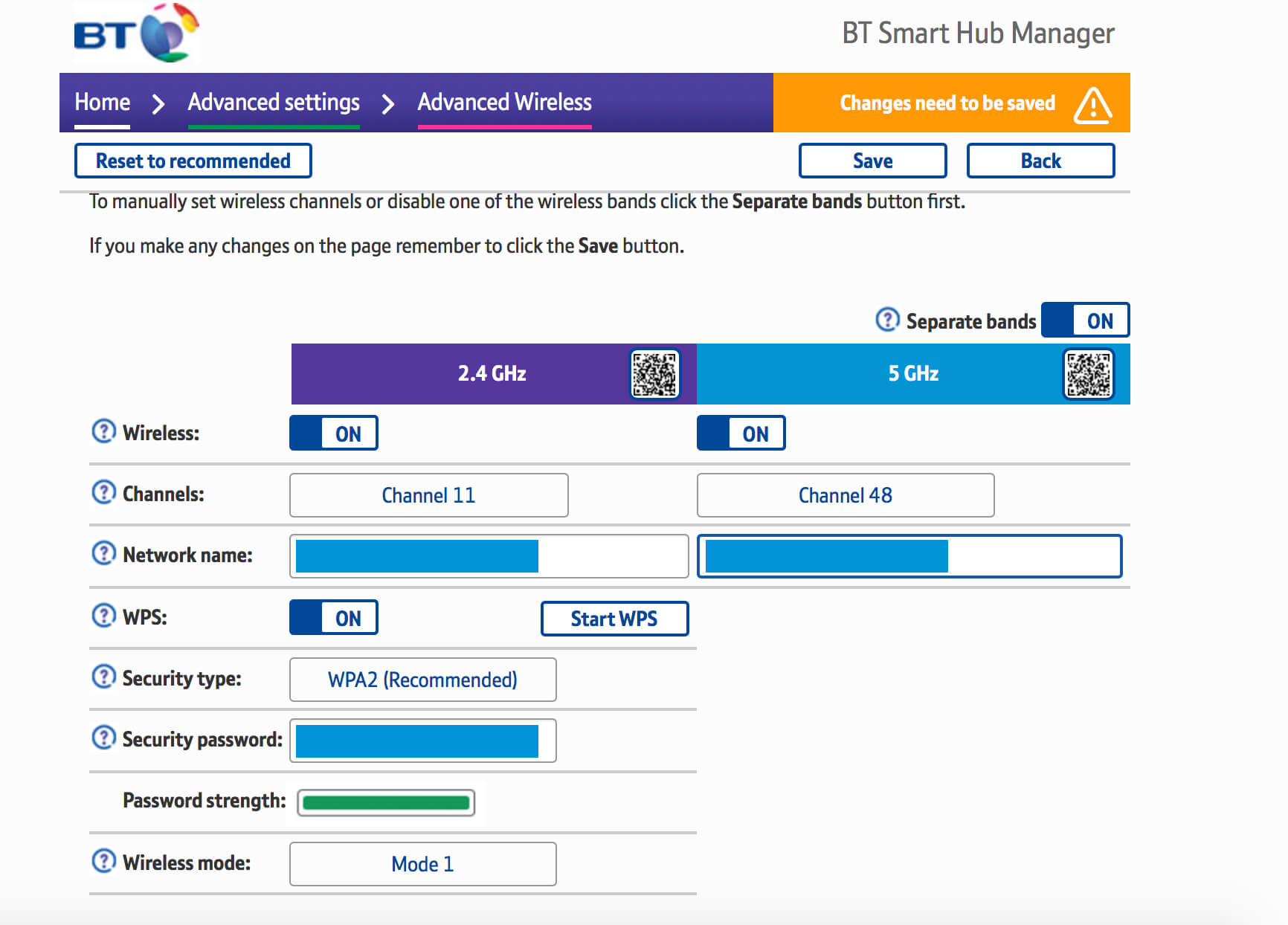 - Open BT Hub Manager and click on Wireless.