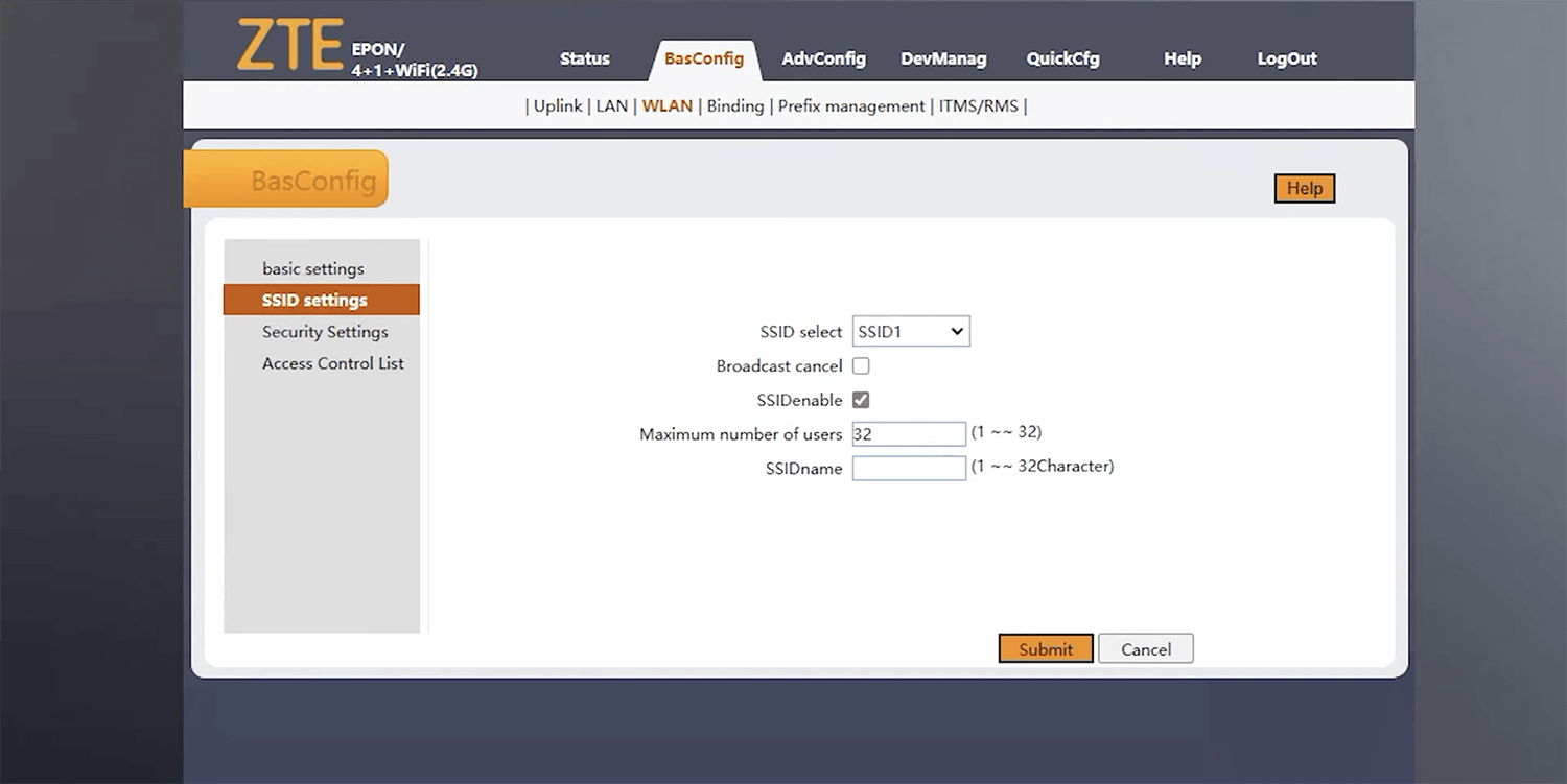 - Enter the Wi-Fi Network Name in the SSID Name field and click Submit.