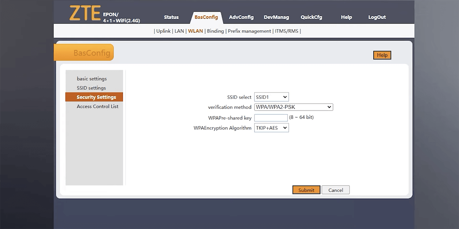 - Enter the Wi-Fi Password in the WPA Pre-shared key field and click Submit.