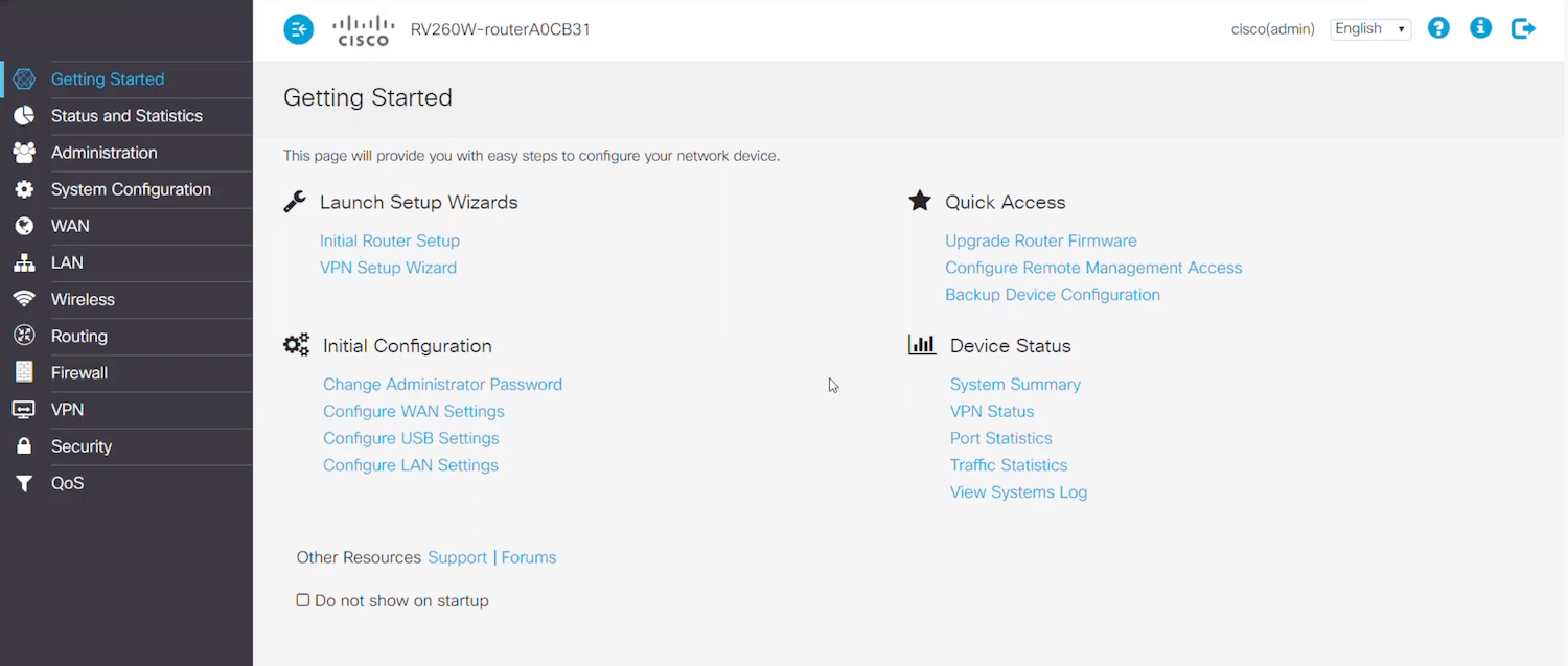 3. You will be logged into the Cisco Graphical User Interface (GUI).
