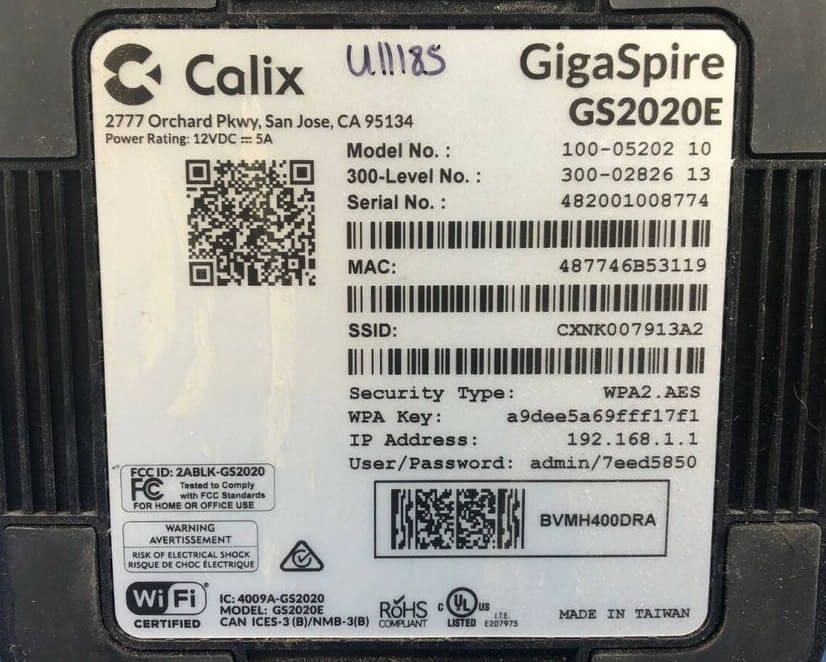 This article applies to: Calix GigaSpire BLAST u6 Router