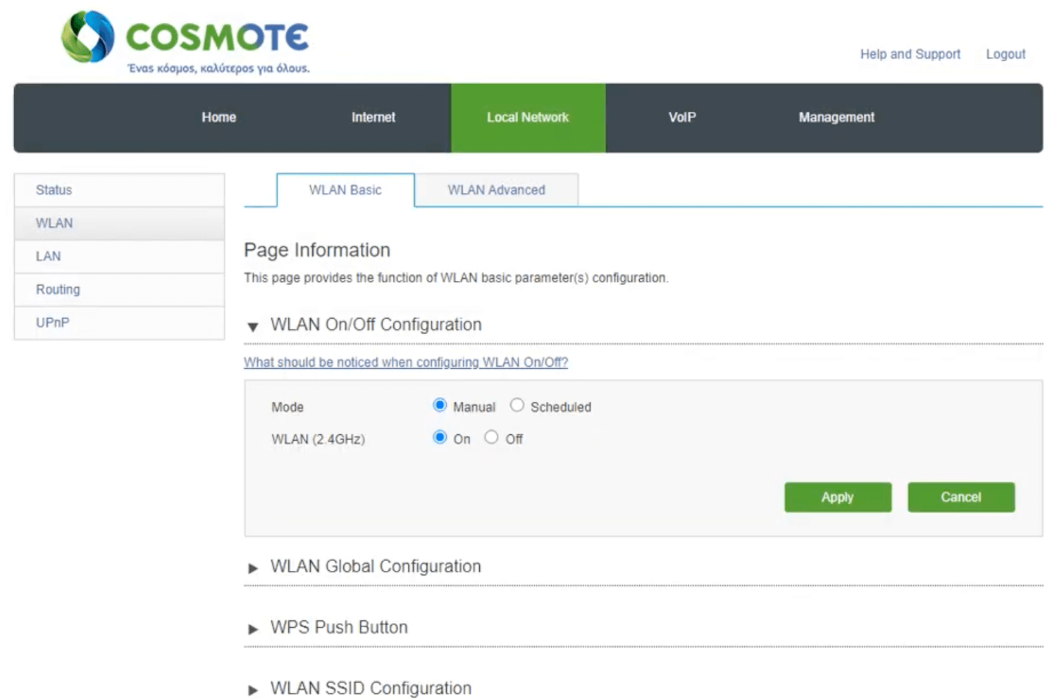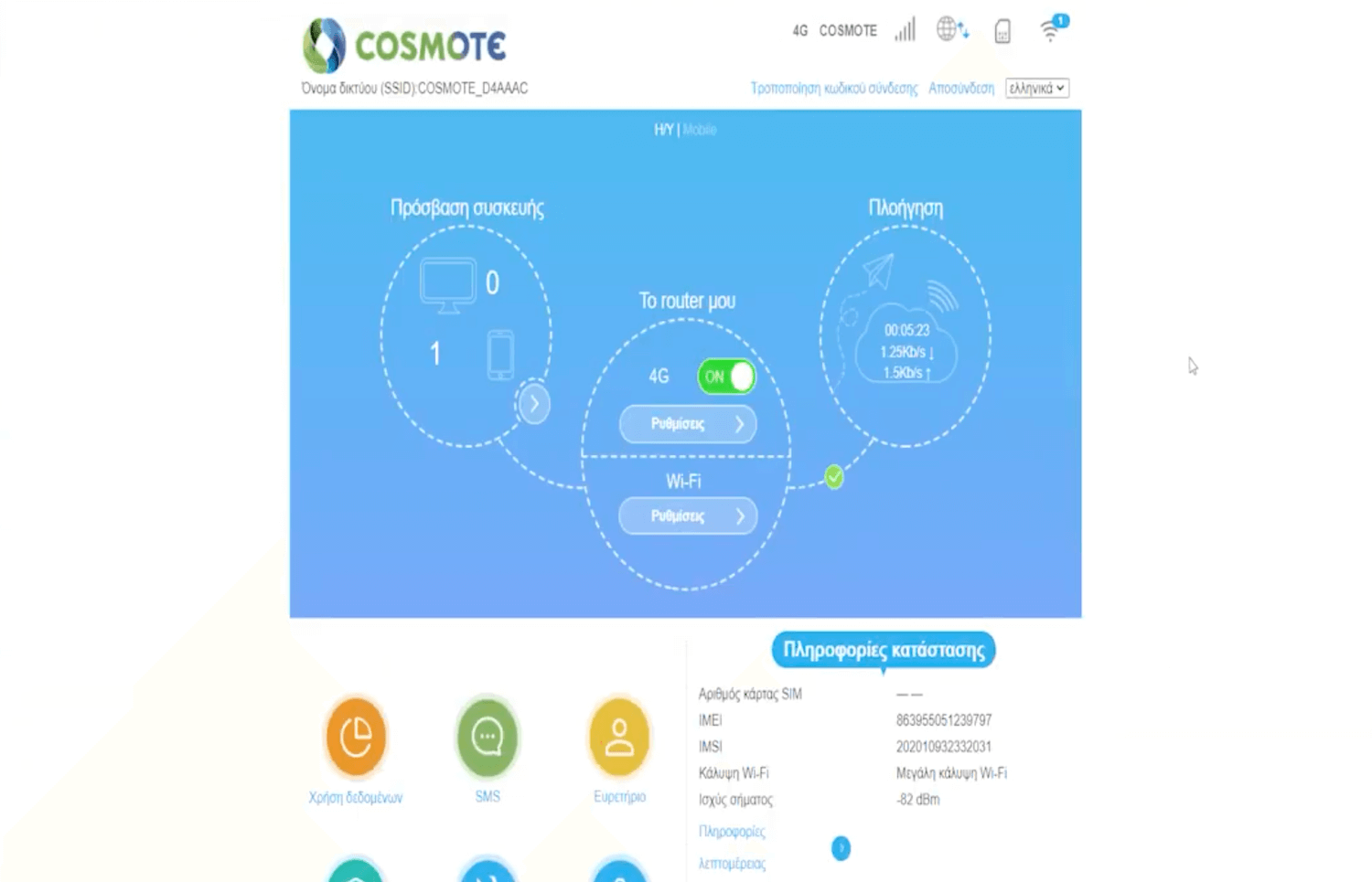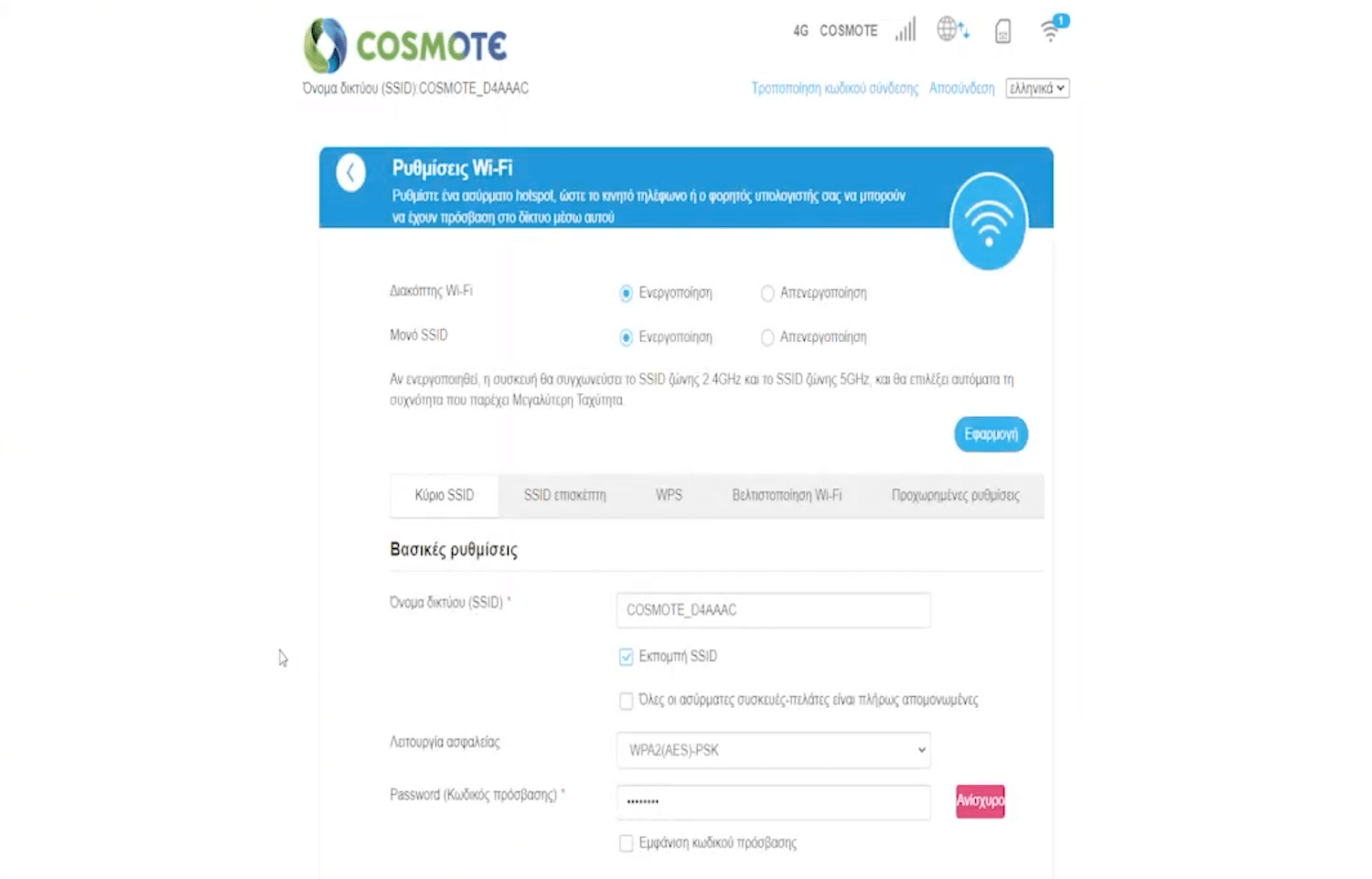 - You will be logged in to Cosmote router settings.