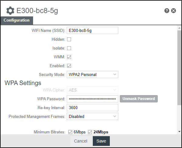 - Enter the Wi-Fi Password in the WPA Password field and click Save.