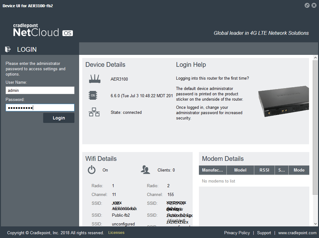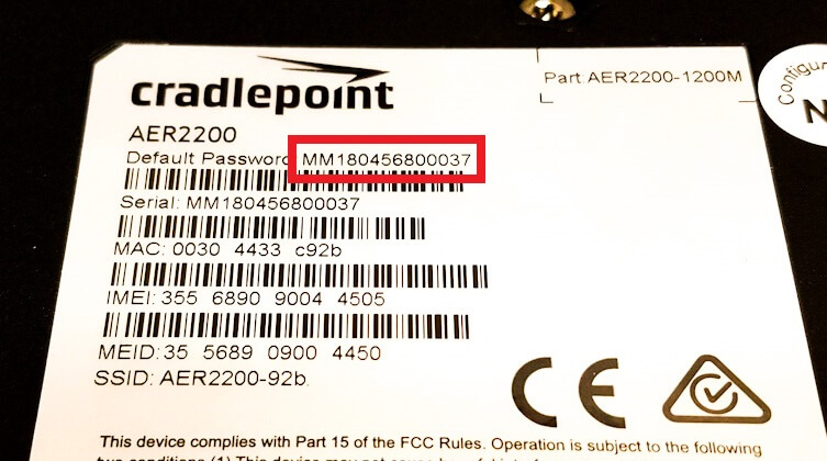 Cradlepoint routers manufactured in December 2018 or later, the password is the 14-digit serial number. The password is case-sensitive.