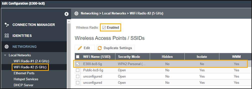 - Select a WiFi Name (SSID) and click Edit.
