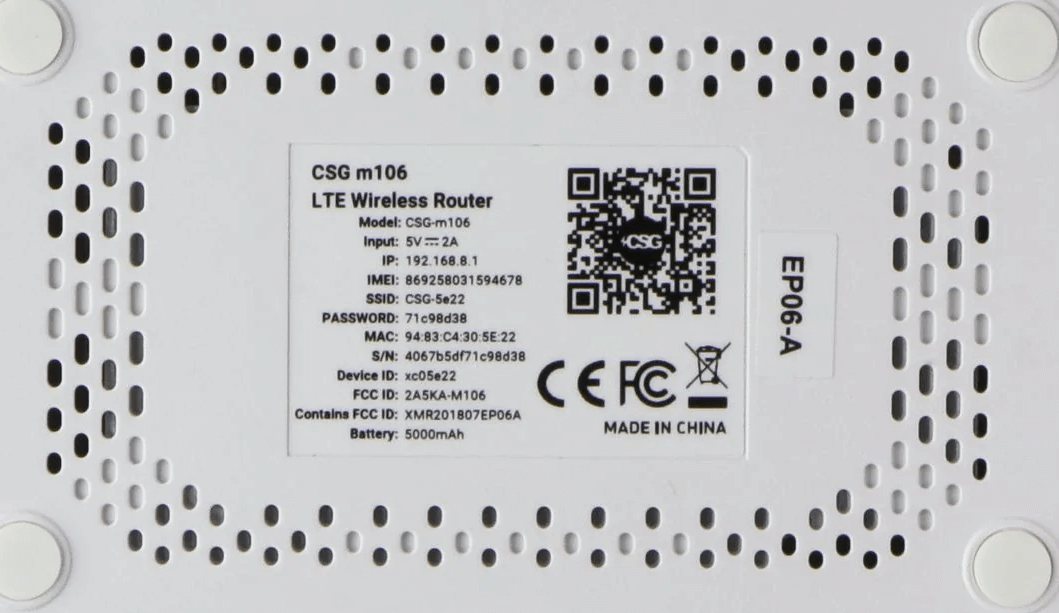 CSG web-based user interface allows you to change Wi-Fi password, Network Name (SSID), and default router settings at http://192.168.8.1.