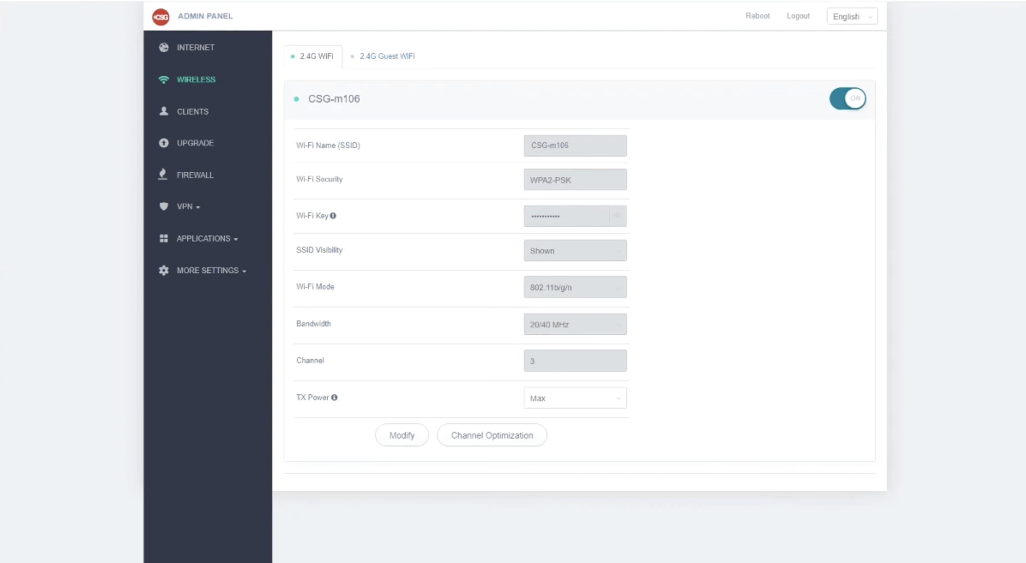 - Select WIRELESS > 2.4G WIFI > Modify.