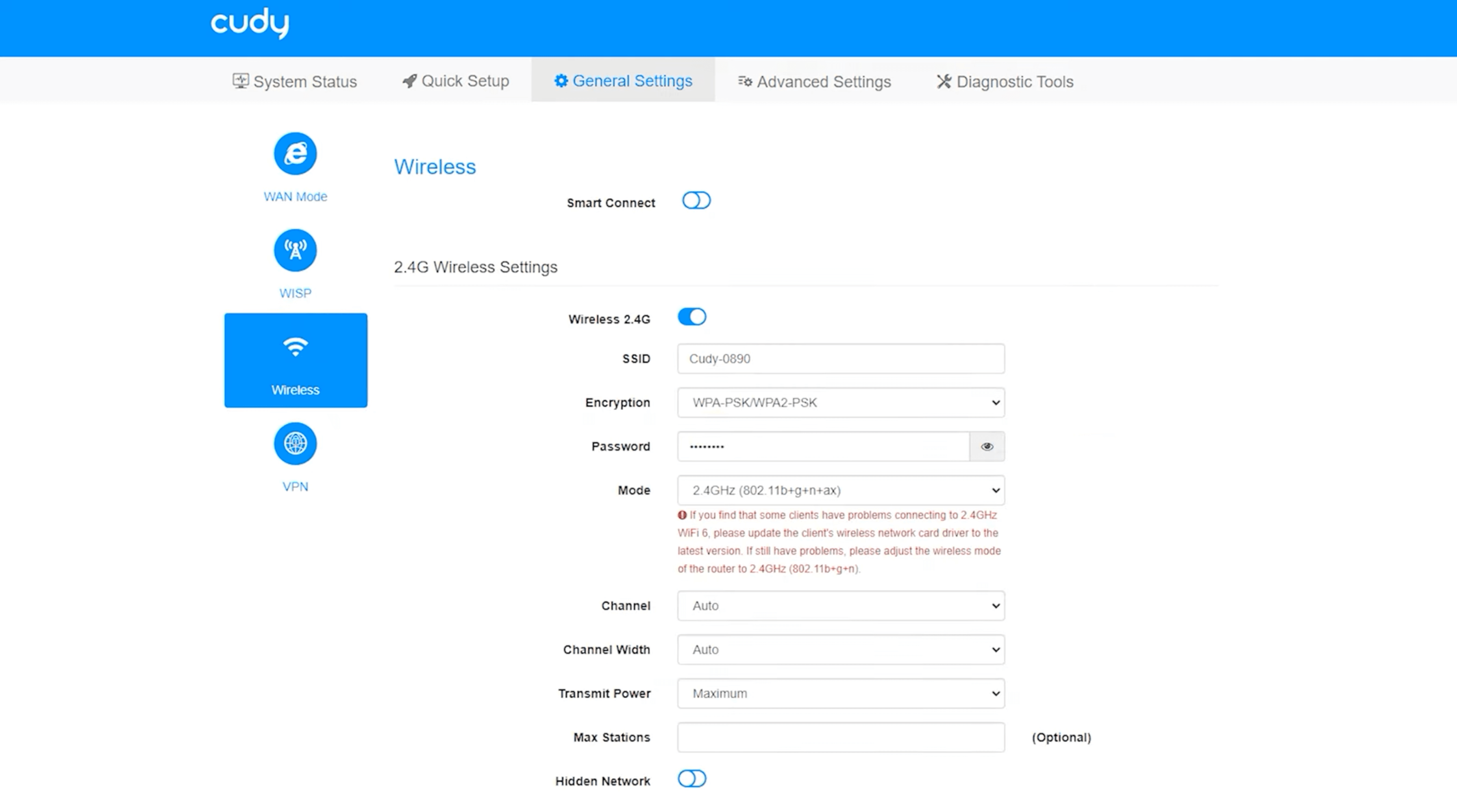 - You will be logged in to the Cudy router settings.