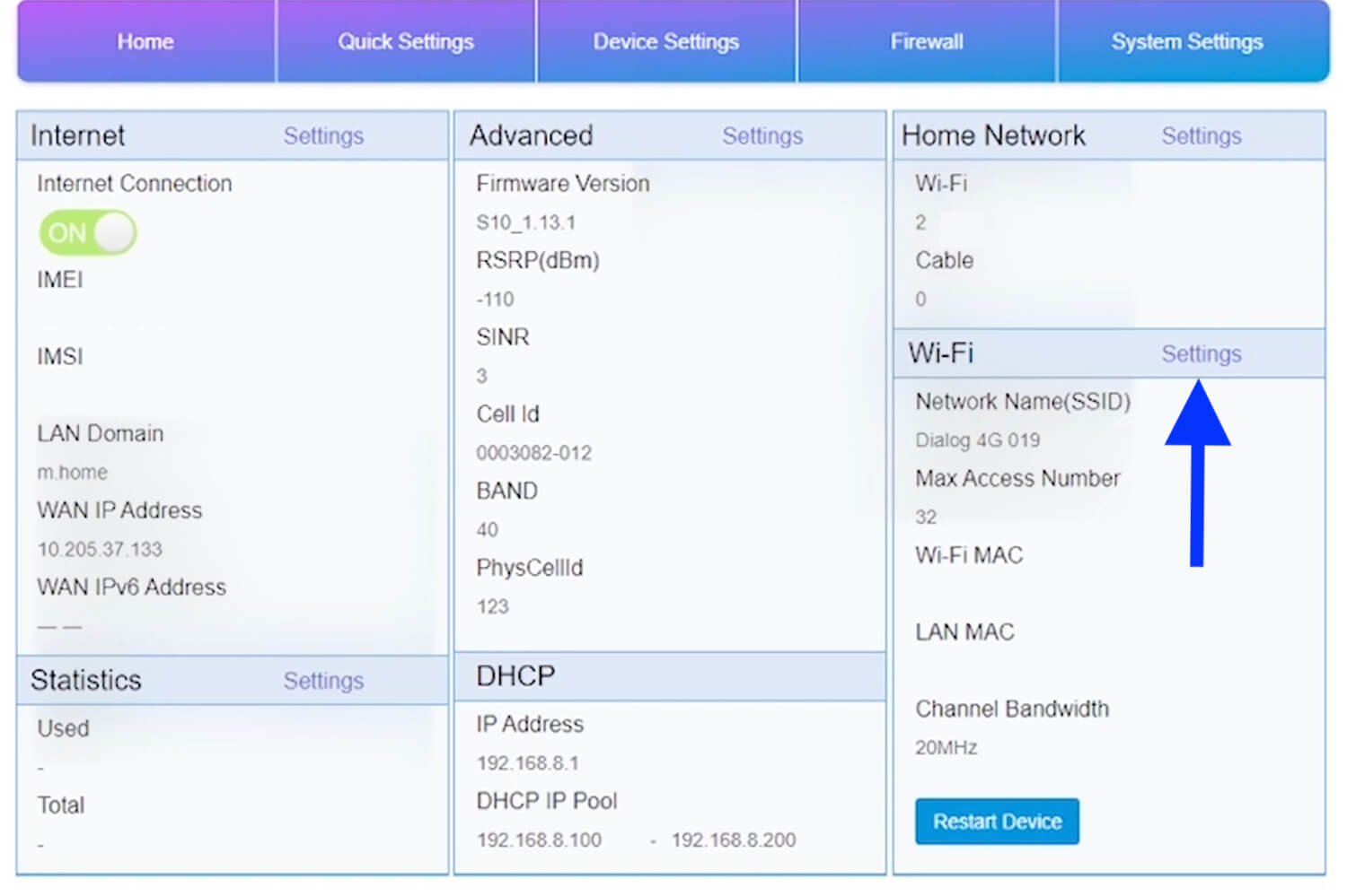 - You will be logged in to the Dialog router interface.