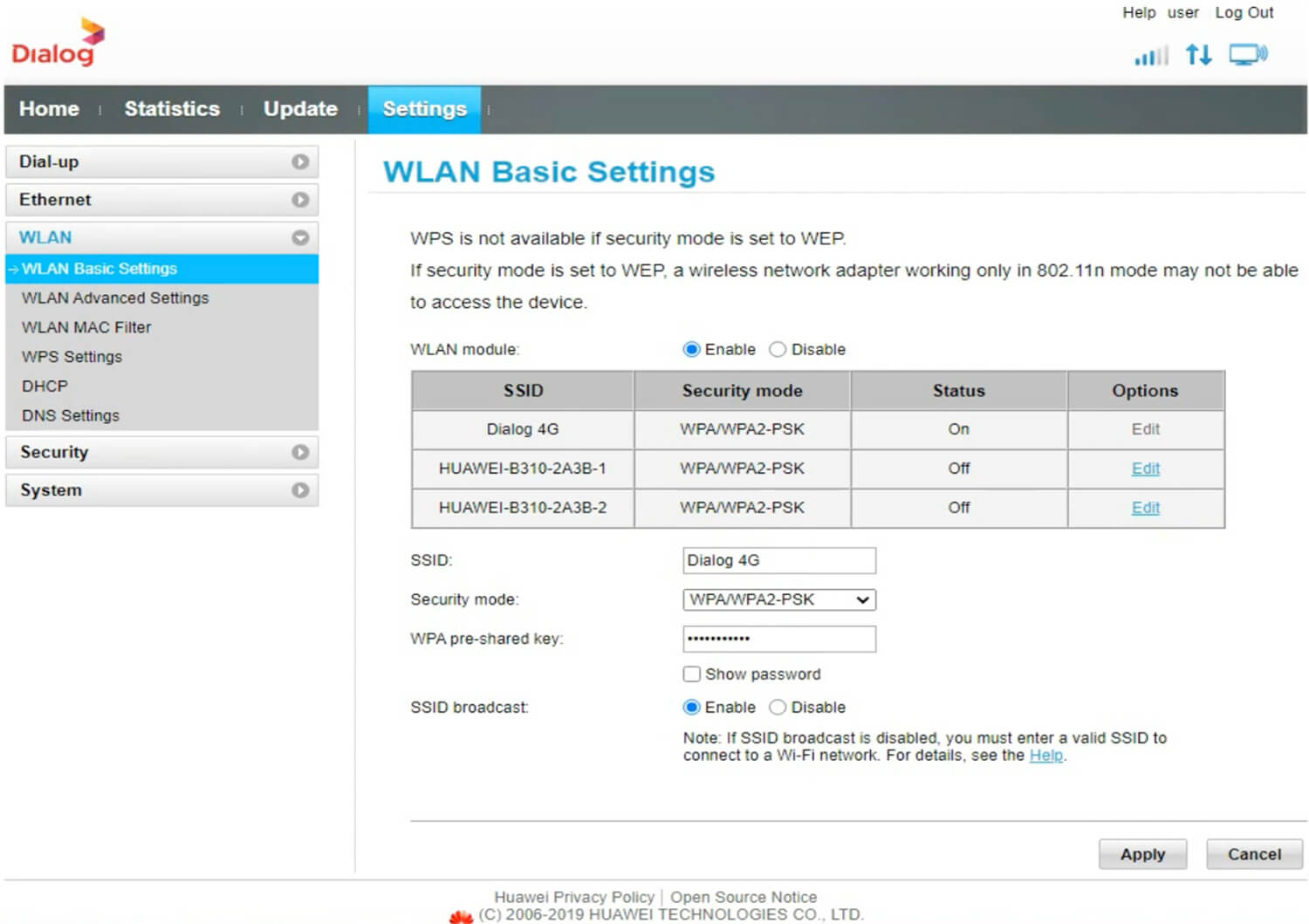 Dialog Broadband Huawei Model: