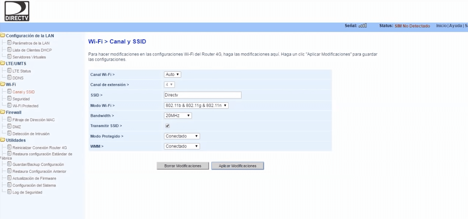 - Enter the Wi-Fi Network Name in the SSID field and click Aplicar Modificaciones.