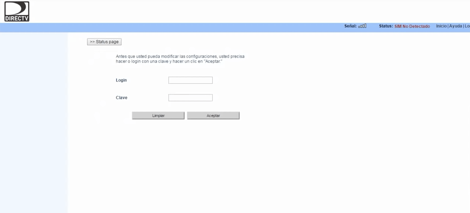- Enter the Login: admin and Clave: admin and click Aceptar.