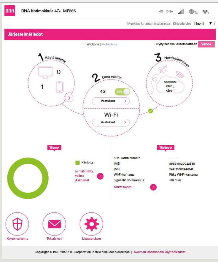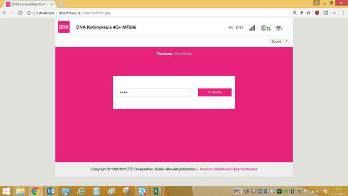- Open a browser and type http://dna.mokkula or http://192.168.1.1 in the address bar.