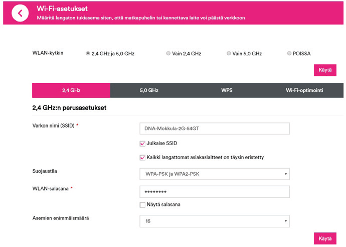 - Enter the Wi-Fi Password in the WLAN-salasana field.