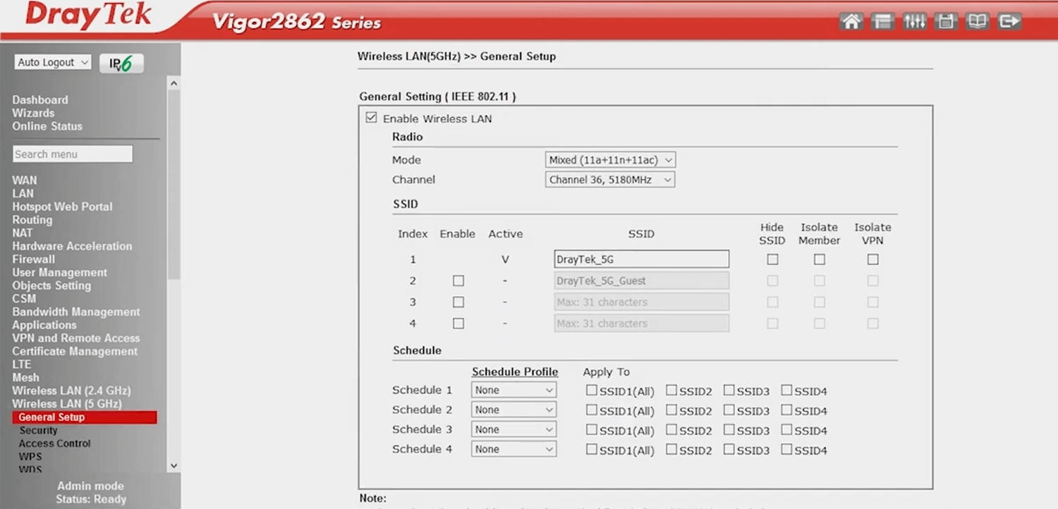 - Select Wireless LAN > General Setup.
