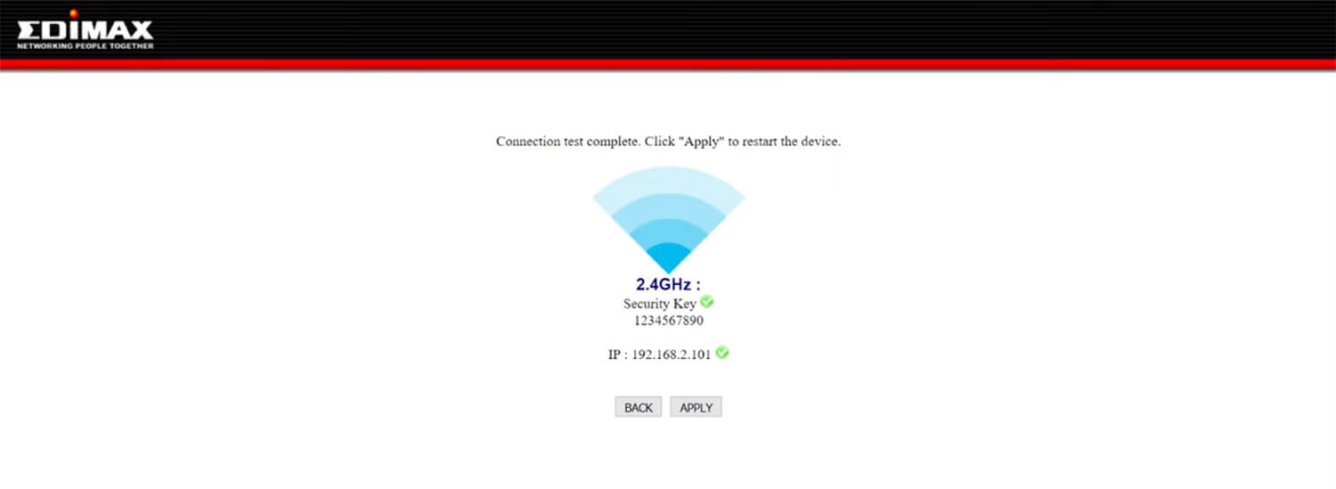 - Your extender has successfully established a connection. You can reconnect to Extender by new SSID name/security key.