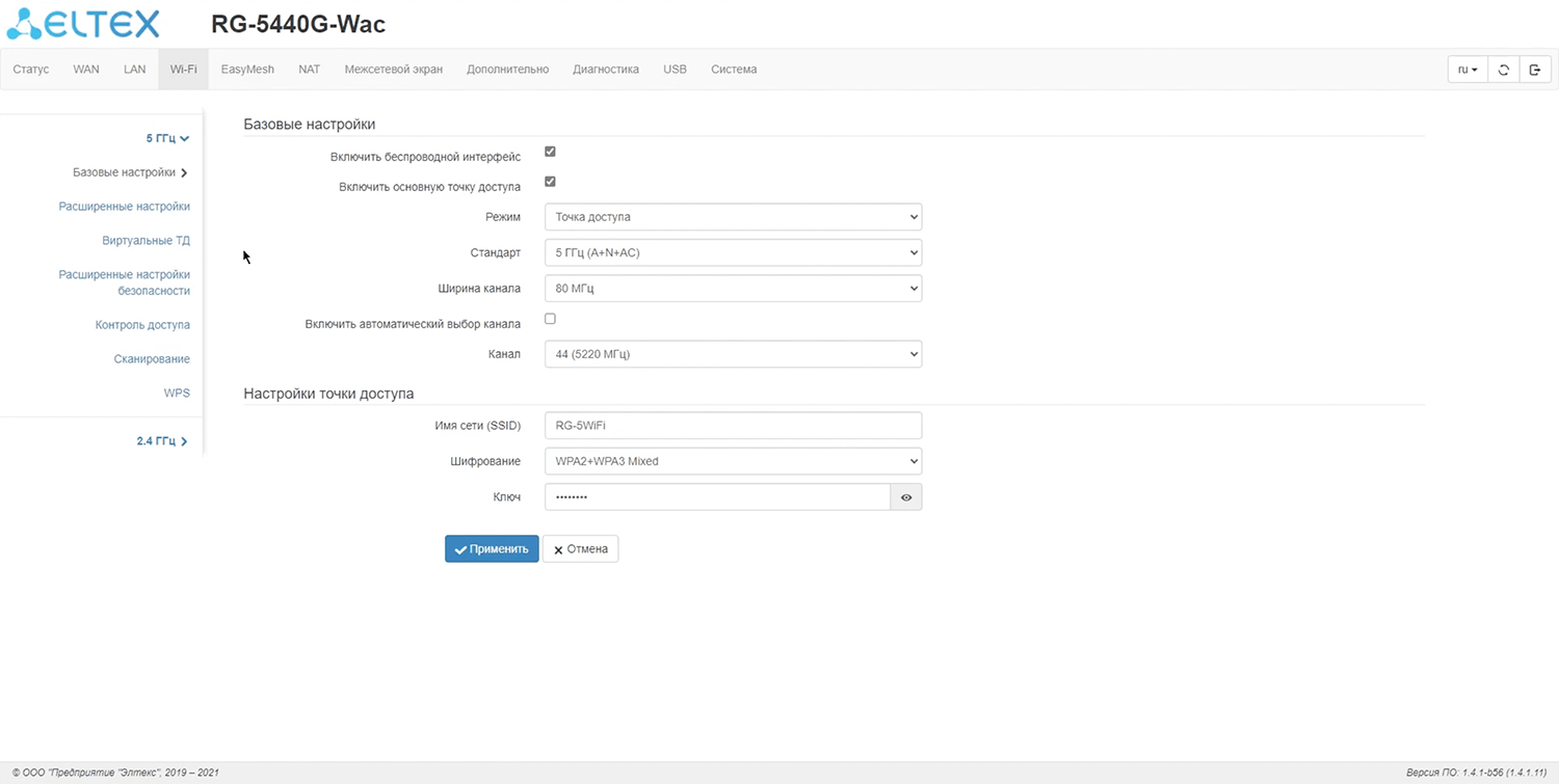- Select Wi-Fi > 5 ГГц > Базовые настройки.