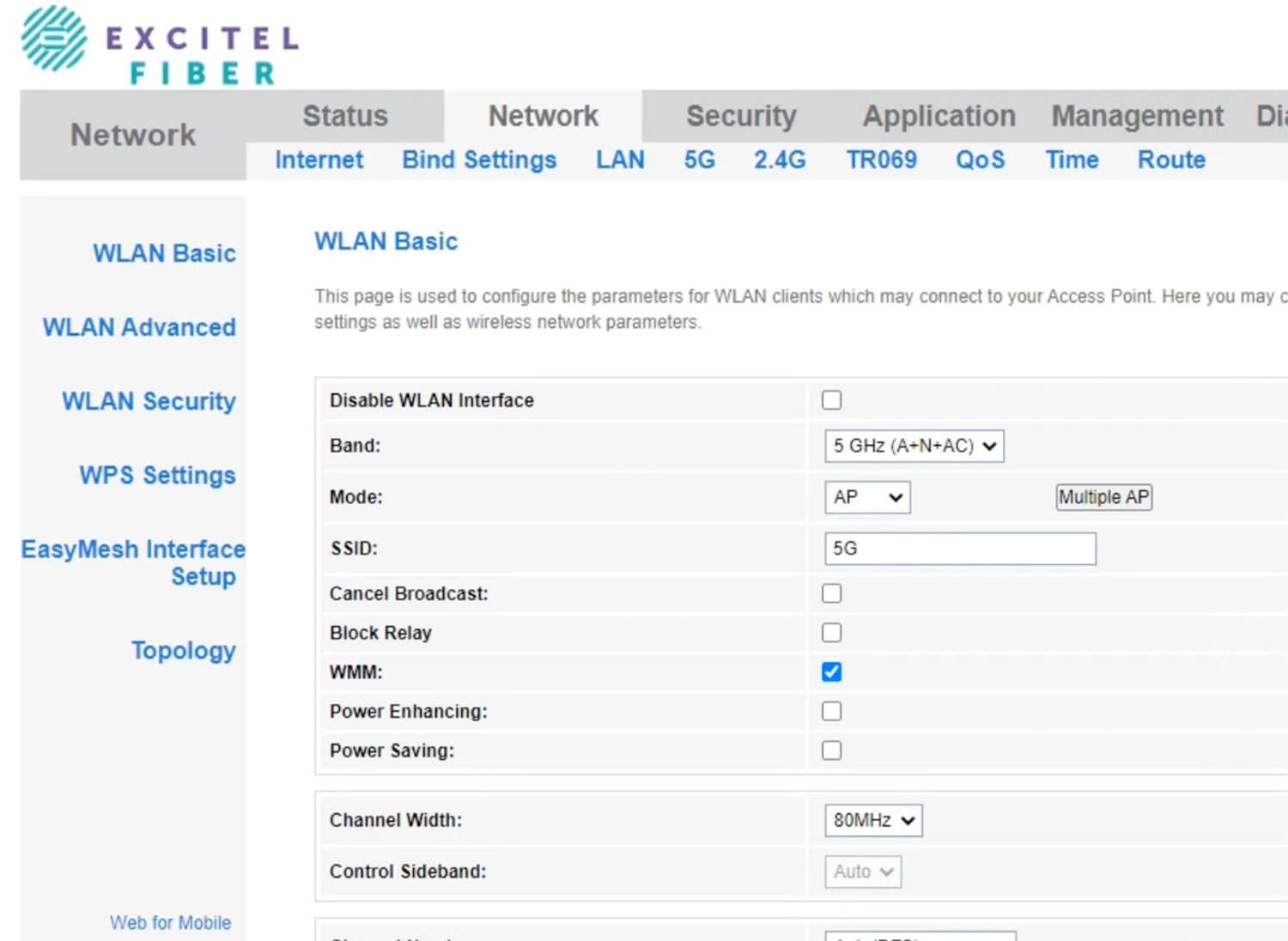 - Select Network > 5G or 2.4G > WLAN Basic.