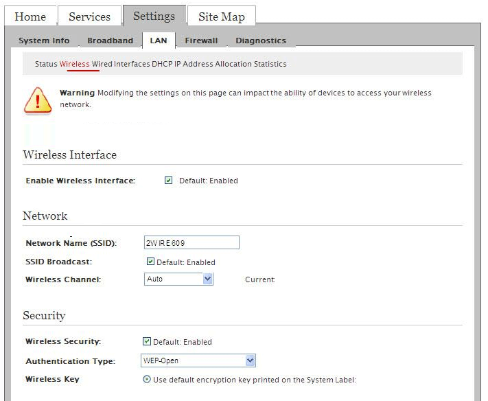 - You will be logged in to the 2Wire router settings.