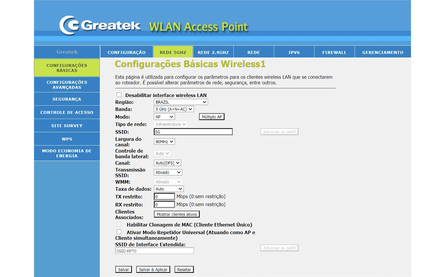 - Select REDE 5GHZ or REDE 2.4GHZ > CONFIGURAÇÕES BÁSICAS.