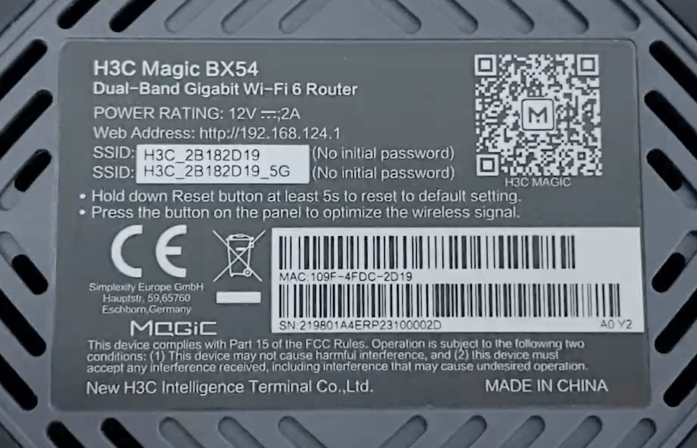 H3C web-based configuration interface allows you to change Wi-Fi password, Network Name (SSID), and default router settings at http://192.168.124.1.