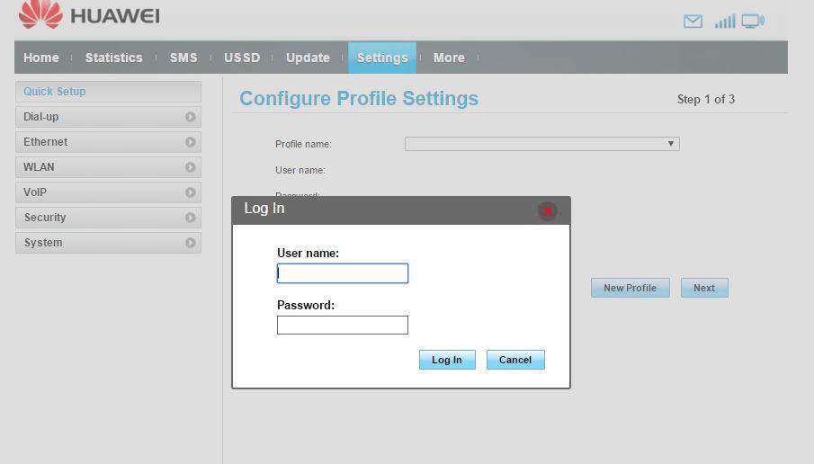Note: In case the above IP address don’t work, try opening: http://192.168.1.1/ - You will be taken to a login page and will have to enter the login username and password to continue. For most of the Huawei Router Models, the default login username and password are:
