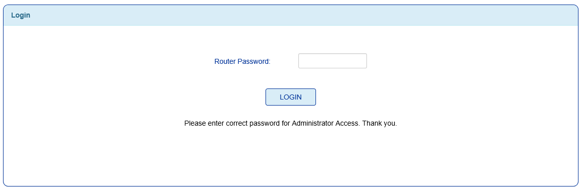 - Enter the Router Password: admin and click Login.