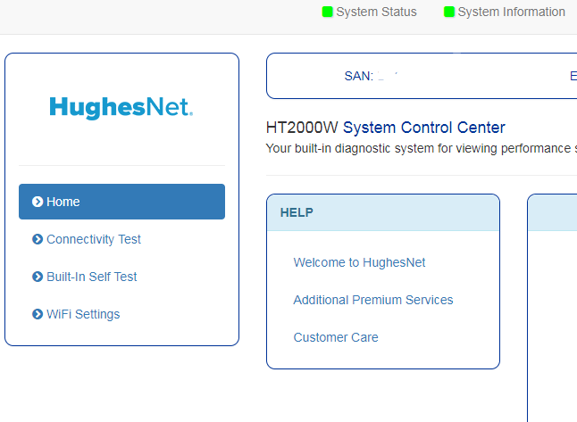 - You will be logged in to the HughesNet System Control Center.