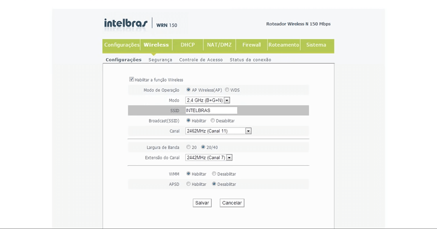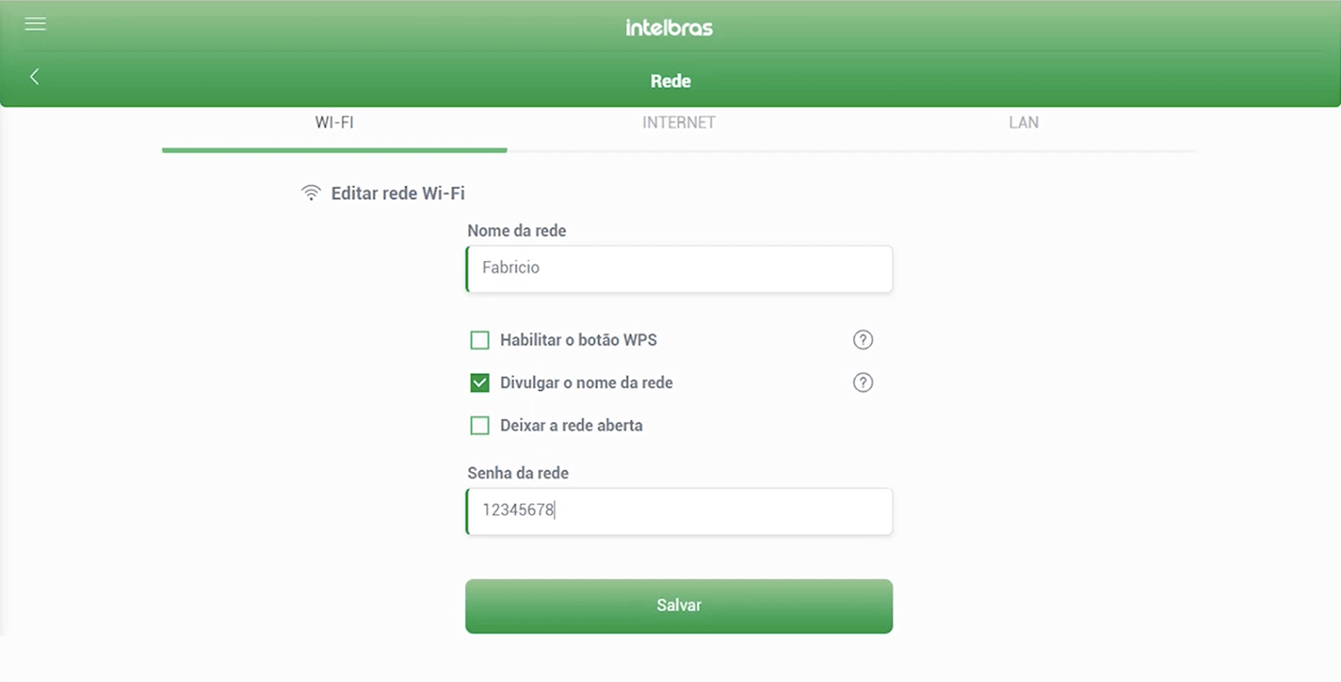 - Enter the Wi-Fi Network Name in the Nome da rede Wi-Fi field and click Salvar.