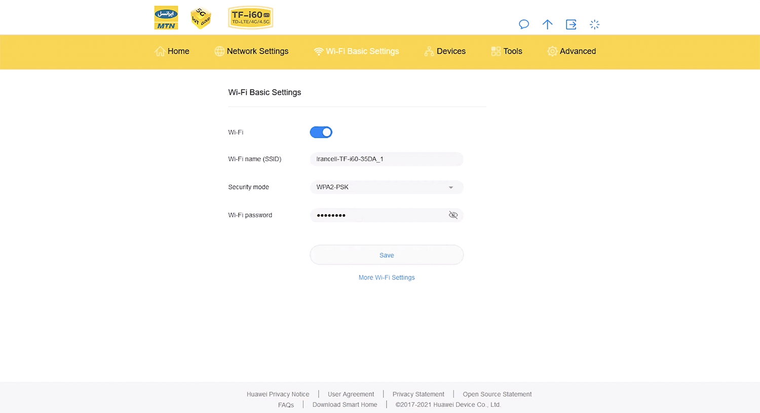 - Enter the Wi-Fi Password in the Wi-Fi password field.