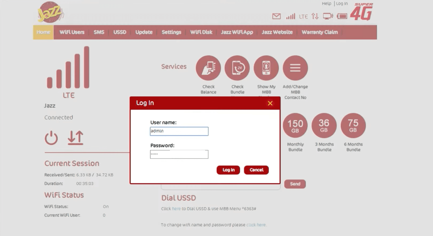 Jazz Device Manager allows you to change WiFi password, Network Name, and default Jazz 4G Device settings at http://jazz.wifi or http://192.168.0.1.