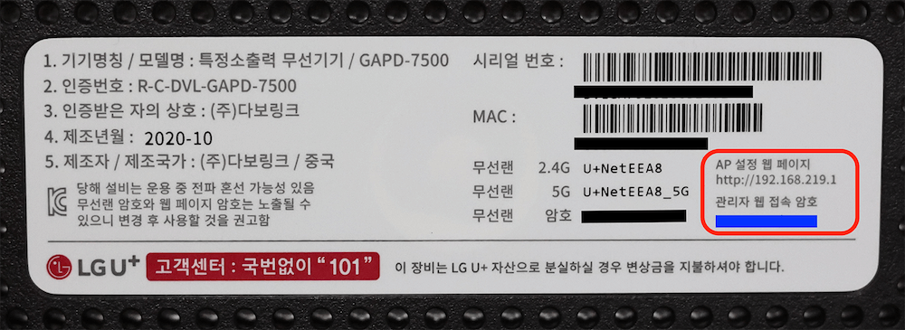 LG U+ web-based management interface allows you to change Wi-Fi password, Network Name (SSID), and default router settings at http://192.168.219.1.