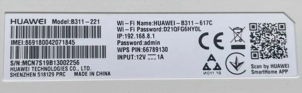 | Huawei B311-221 | 192.168.8.1 | admin | admin |