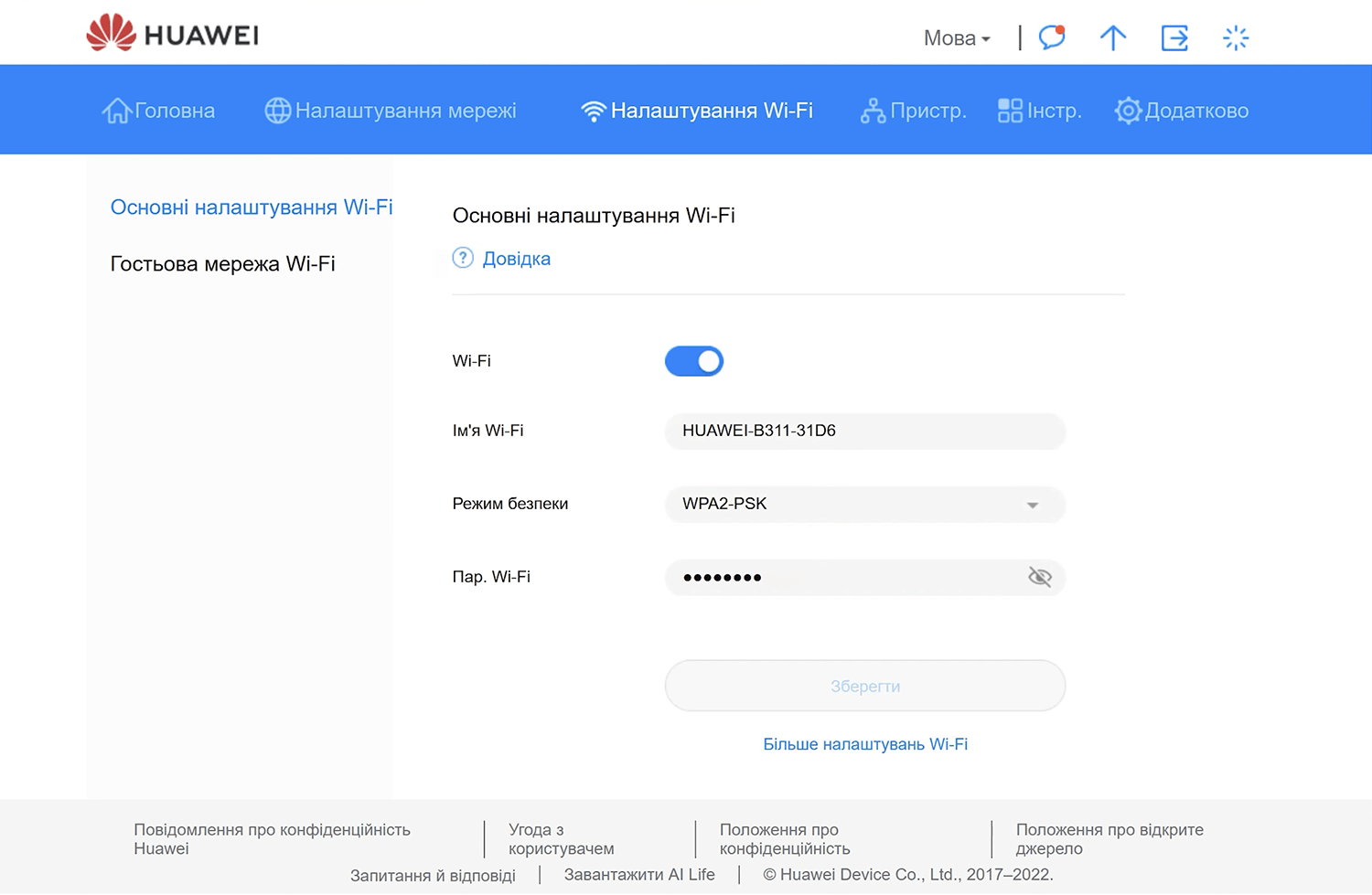- Select Налаштування Wi-Fi > Основні налаштування Wi-Fi.